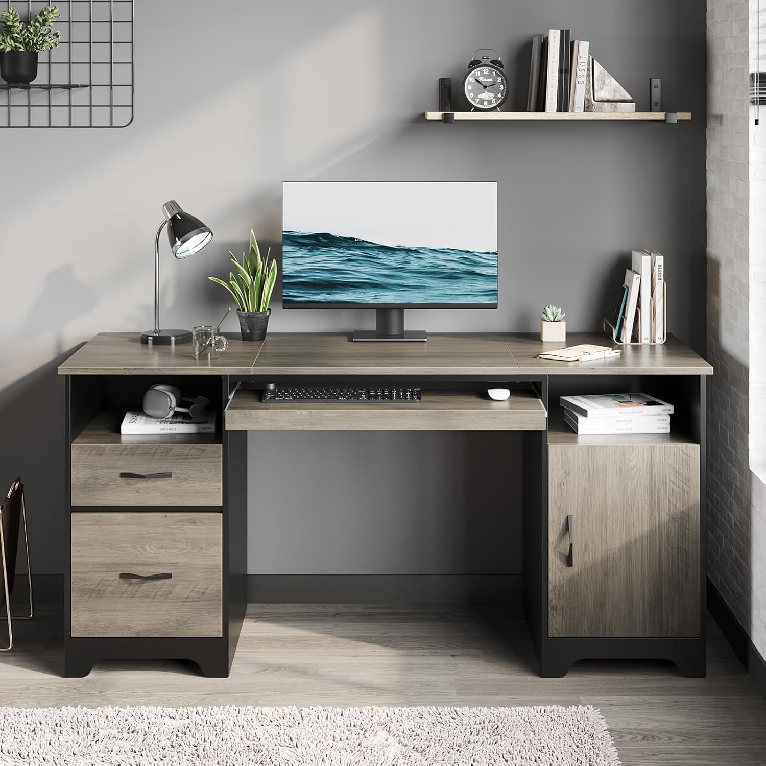 Spacious Workspace: With a generous desktop size of 59" x 22", this work desk with storage provides plenty of room for your computer, documents, and other office essentials, facilitating efficient multitasking